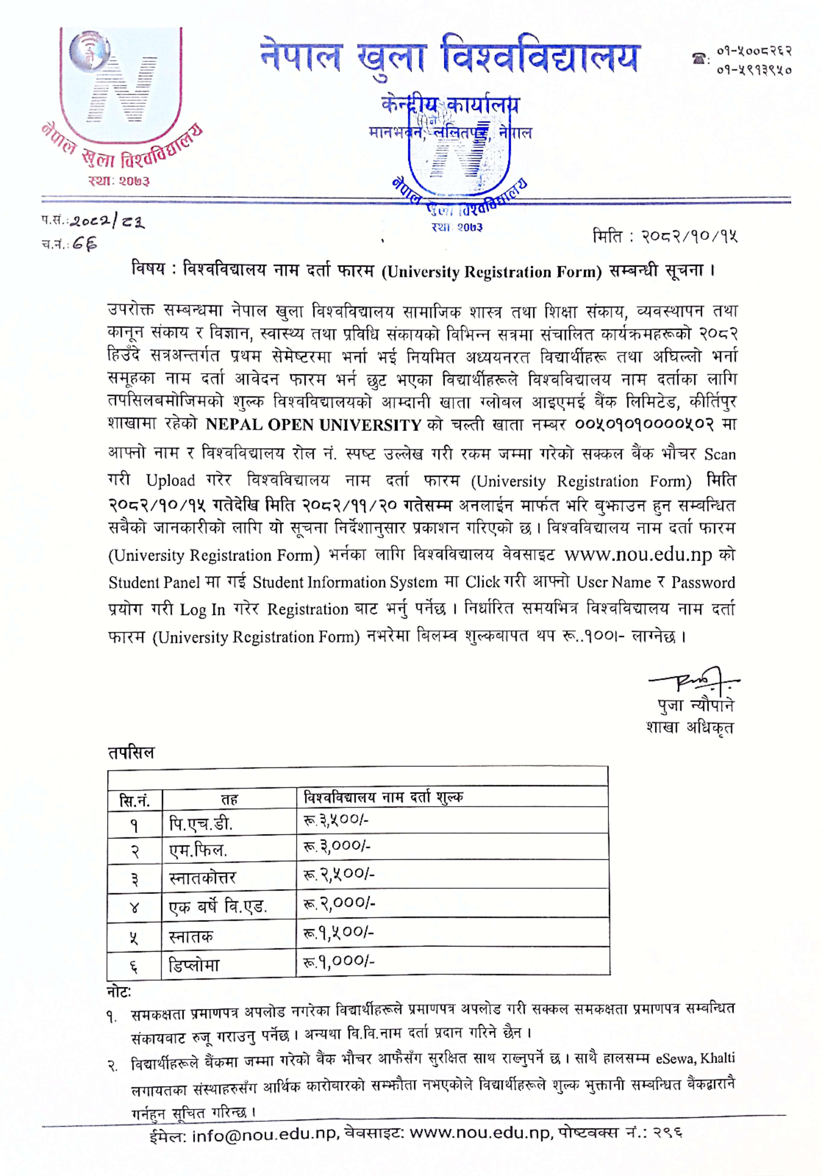विश्वविद्यालय नाम दर्ता फारम University Registration Form सम्बन्धी सूचना