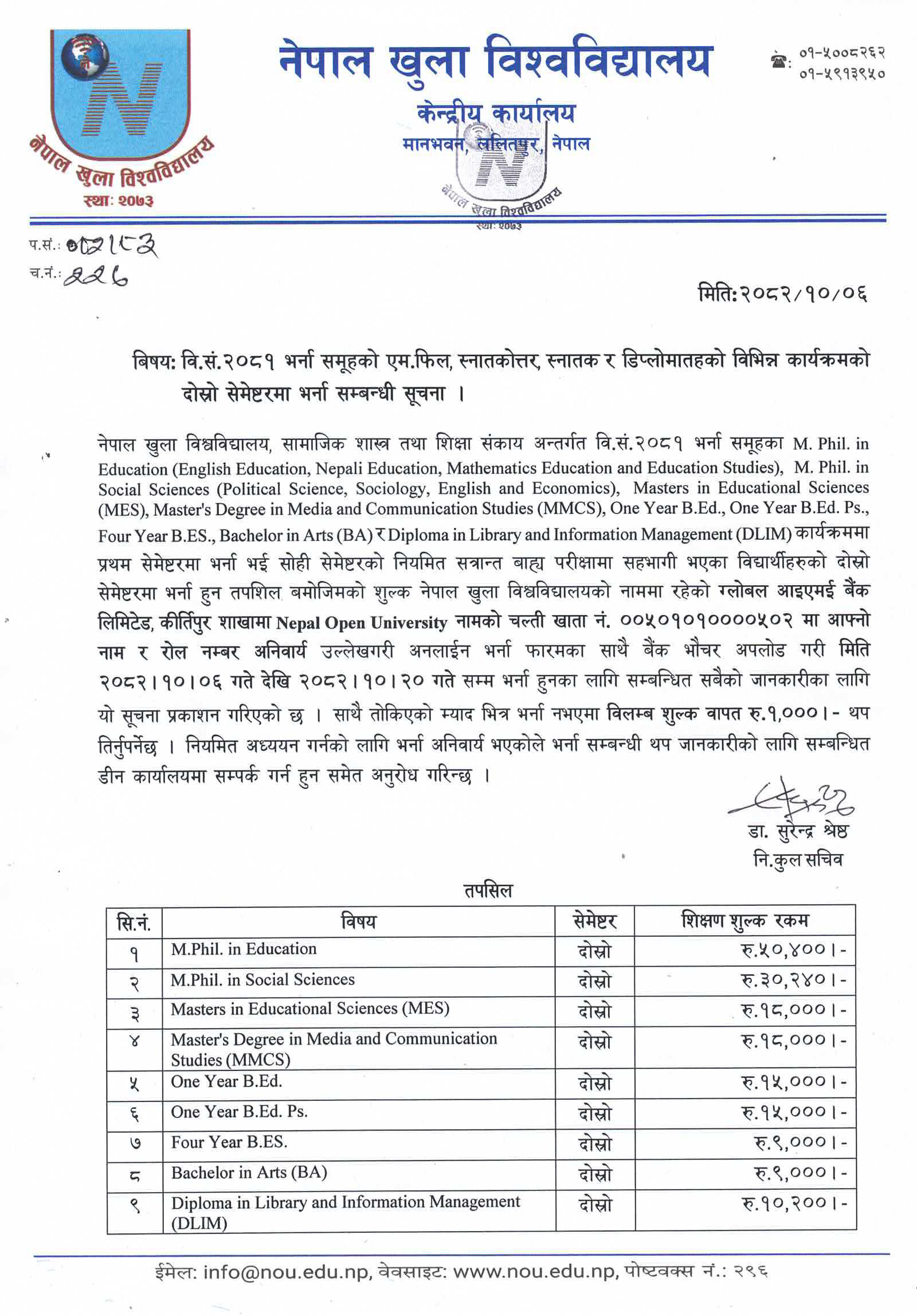 Nepal open University (NOU) is established to provide enhanced access to all those, who find it difficult to pursue education in the traditional mode because of diverse reasons, in an affordable manner. It aims at equipping learners with knowledge, skills, competencies, abilities and overall development in order to enhance their employability or engage in academic or knowledge generating activities or for fulfilling individual or social needs bef... Read More